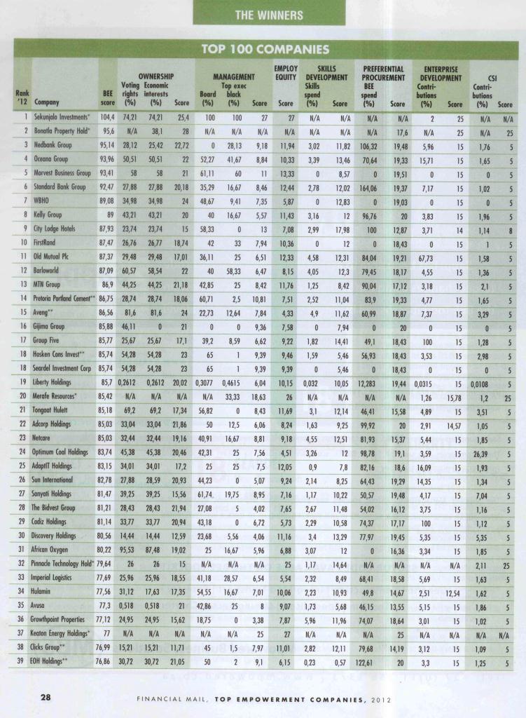 FINANCIAL MAIL - 27th April 2012 - The top contenders in FM’s “Top Empowerment Companies 2012 Survey” - Page 3