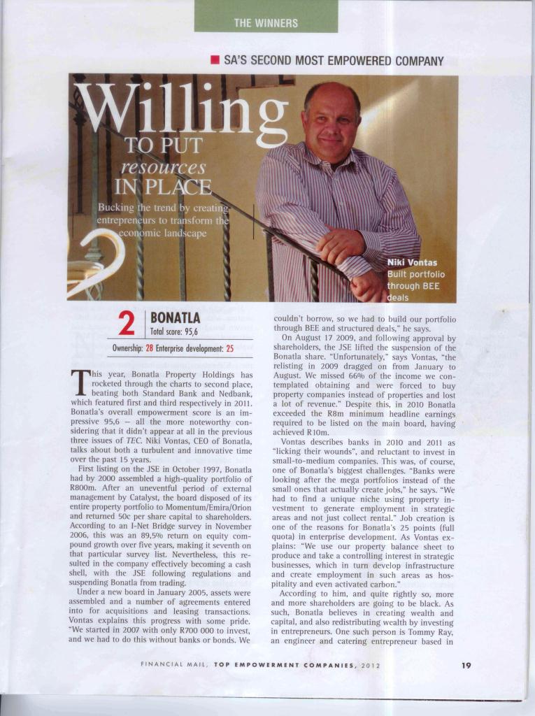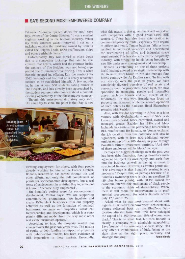 FINANCIAL MAIL - 27th April 2012 - Bonatla placed second in SA in FM’s “Top Empowerment Companies 2012 Survey” - Page 2